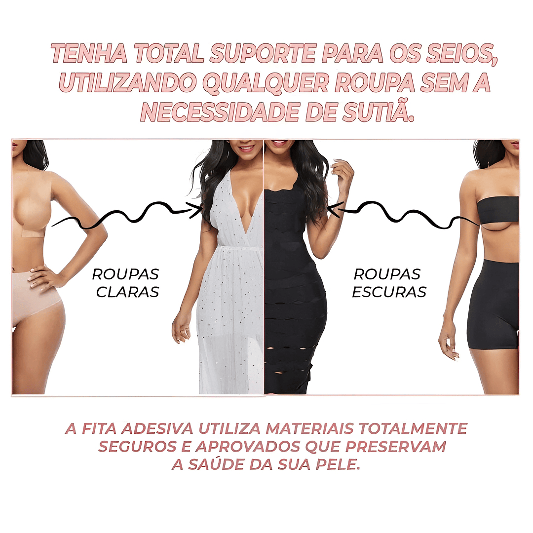 Levanta, junta e modela os seios dando aquele Up e valorizando o visual. A solução perfeita para tops, blusas sem alças, costas nuas, decote V, decote profundo, vestido de noiva, etc.